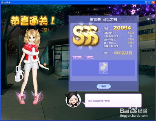 第10关 回忆之初 念小学的小丫头,那会肯定是个萌妹子, 所以这一关要使用萌萌的衣服来搭配,SSS如下图。