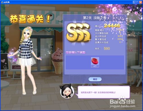 第4关 浪漫约定 浪漫的气氛,优雅些也好,所有需要玩家搭配时要显得人物优雅一点,浪漫一些,SSS如下图。