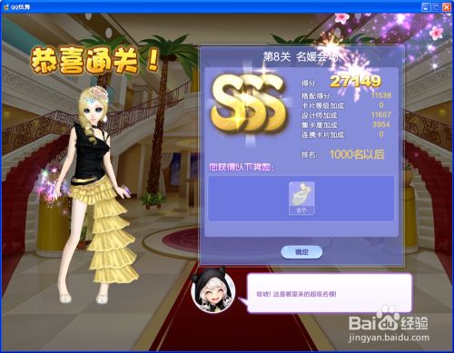 第5关 报名参选 要去报名参加海选啦~打扮的时尚些才好吧,这一关需要时尚,可以选择套装卡片,分数会更高哦,SSS如下图。