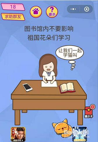 第十八关,图书馆内不要影响祖国花朵们学习