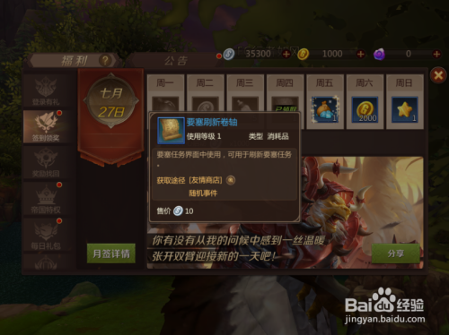 我叫MT4手游玩家还可以在签到奖励页面通过签到获得要塞刷新卷轴,一般一周通过签到可以获得一张。