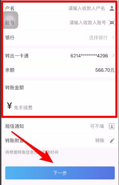 依次输入正确的户名、账号、转账金额,然后点击【下一步】;