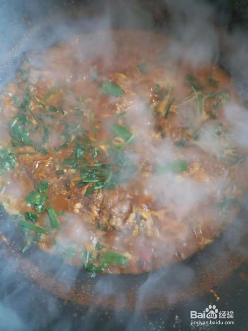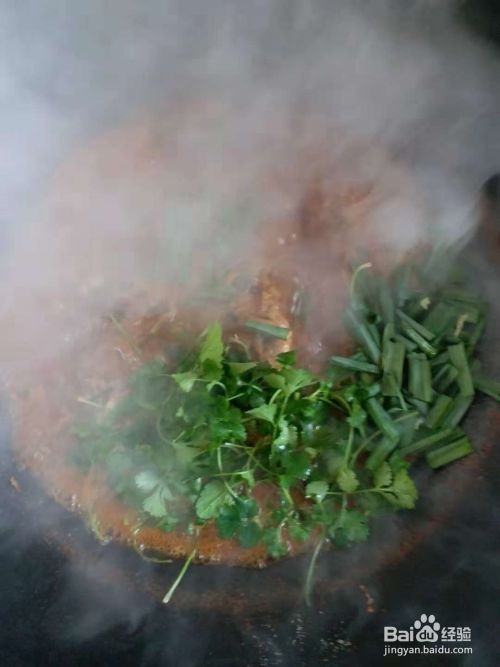 盖锅盖,烧12分钟左右,看下锅里的情况。汤汁不能烧干。放入香菜和蒜苗。