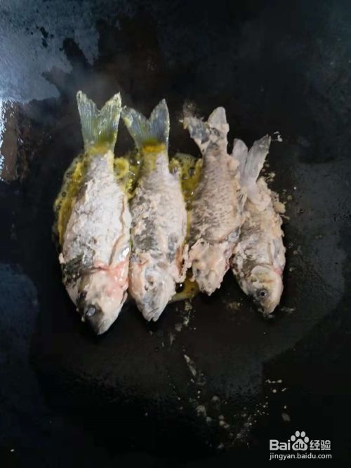 锅里放稍微多点食用油,烧热,然后放入滚好面的鱼开始煎。