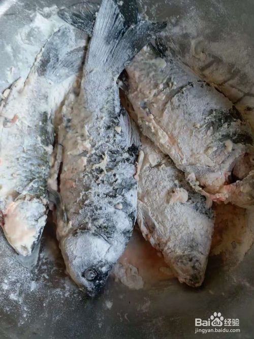 把准备好的食材切好,备用,鲫鱼放面粉里滚一圈。