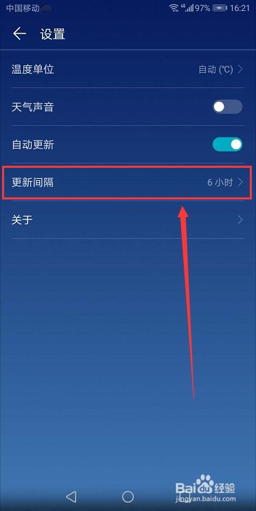 然后在设置页面里有个 更新间隔,就是天气的更新时间,如下图