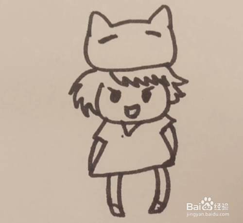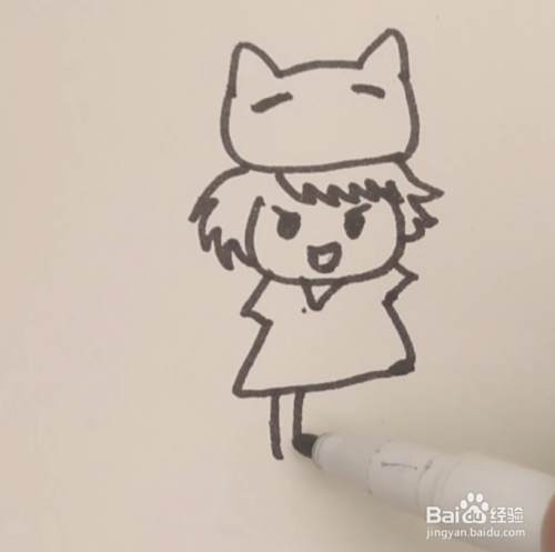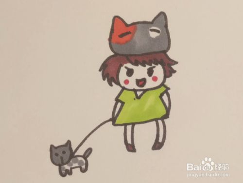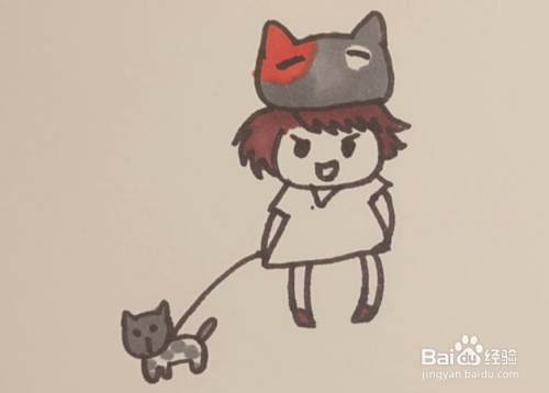 今天我来跟大家分享一下简笔画遛猫的小女孩。