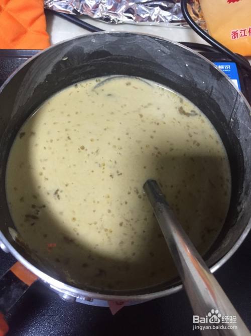 第三步,就是将它加热,在加热的过程中加入冷水,慢慢的将它熬成糊状,太浓或者太薄都不可以哦
