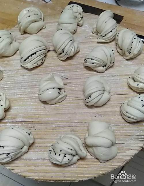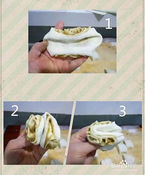 取一个面挤抻拉开,然后对折,像拧8字一样拧成花卷。