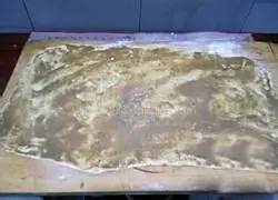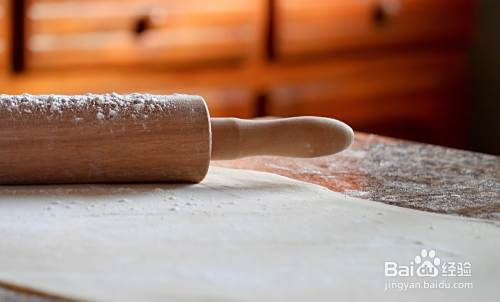 用擀面杖擀开越薄越好,放少许香油抹匀。