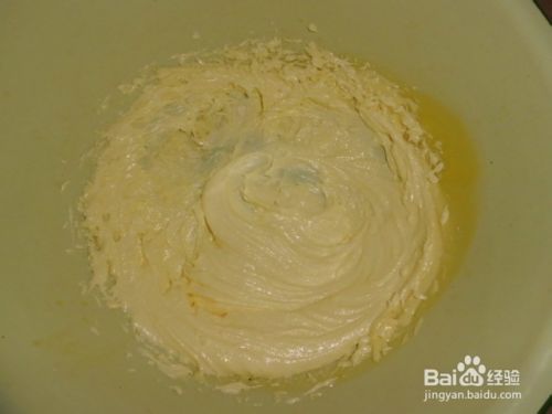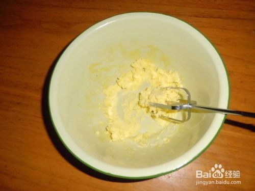 将黄油室温软化(或把黄油盛在容器里放在温水里)用打蛋器打散,加入白糖打到体积膨胀,颜色稍微发白即可。