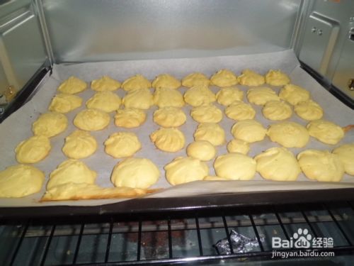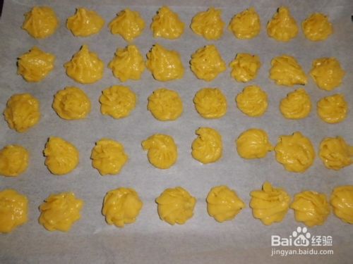 放在裱花袋里整型,一个个可爱好看的牛奶蛋换饼干就挤出来了,挤在铺好油纸的烤盘上。