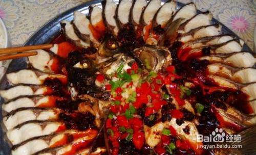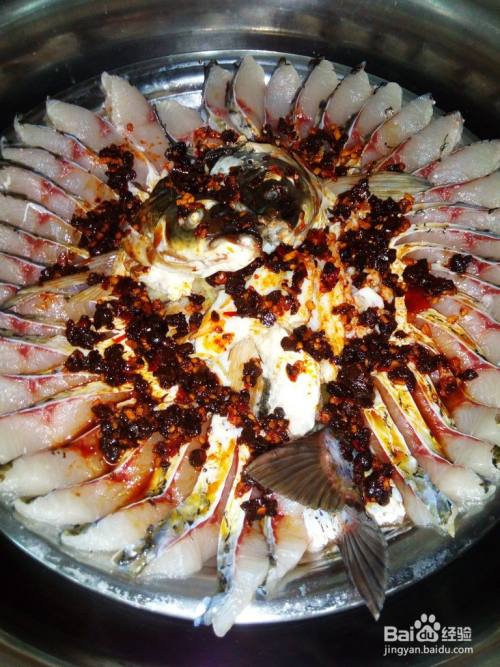 鱼头不要剁开,前面剁开后面连着,否则不好摆盘子。