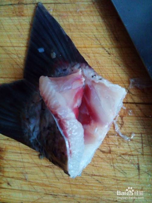 将鱼尾修整齐,待用,后面开始改刀鱼尾,分几步。