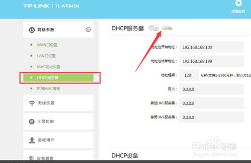 开启DHCP功能