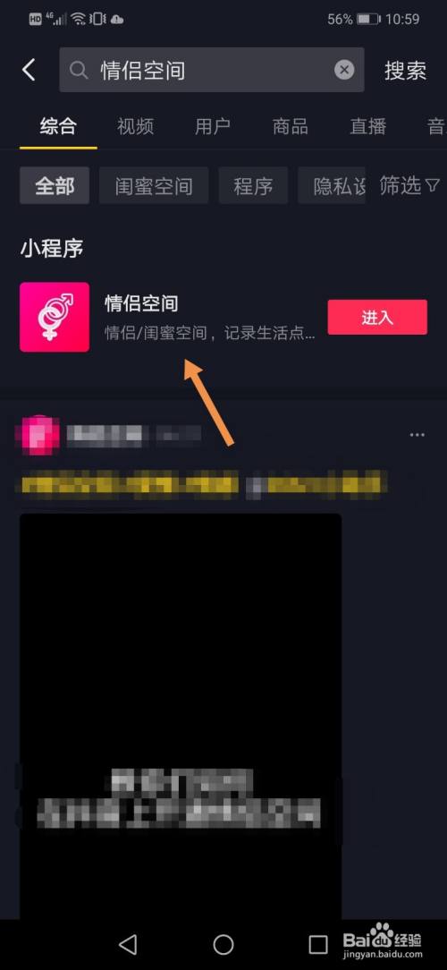 搜索“情侣空间”,点击小程序“情侣空间”。