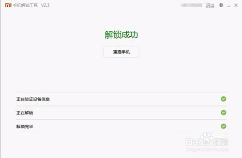 一会就弹出解锁成功的窗口,点击重启手机按钮后,拨下数据线就可以了。