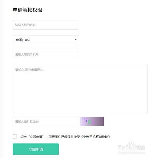这时会弹出申请解锁权限的窗口,在这里输入我们的姓名与手机号,申请理由等,然后点击“立即申请”按钮,申请时间有人说需要等待,不过笔者只用了一会就申请通过了。