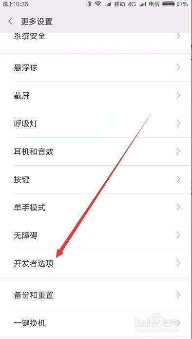 首先在手机上点击“开发者选项”菜单,在打开的菜单中选择“设备解锁状态”菜单项