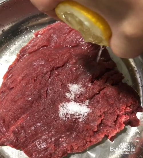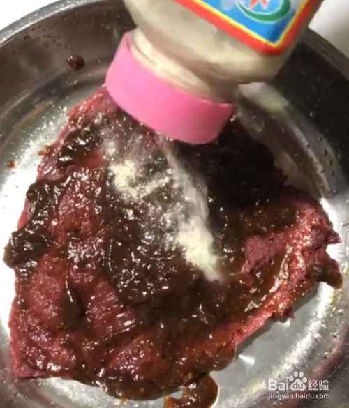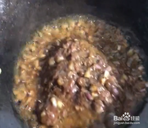 将腌制好的牛排倒入锅中,小火慢煎10分钟左右,如下图。