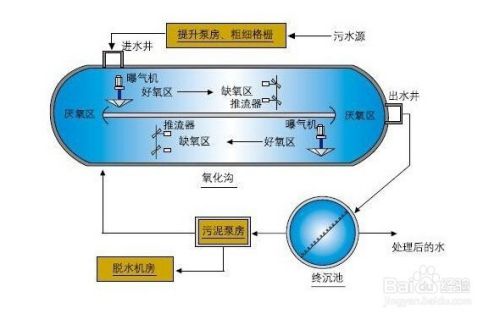氧化沟以连续回转式反应池为生物反应池,混合液在该反应池中一个闭合曝气廊道中循环,氧化沟通常在延时曝气条件下使用。氧化沟使用一种控制方向的曝气和搅动装置,使被搅动的液体在闭合式廊道中循环。