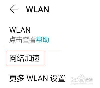 在WLAN设置界面,点击网络加速选项进入。
