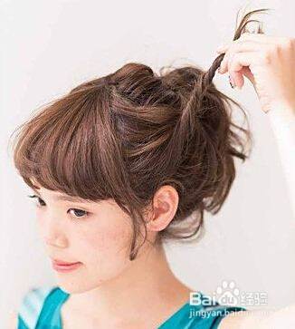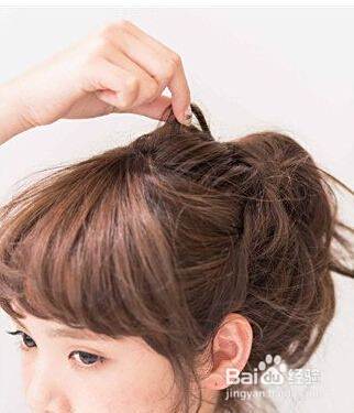 用手稍稍拉扯一下头顶的头发,打造出蓬松感。