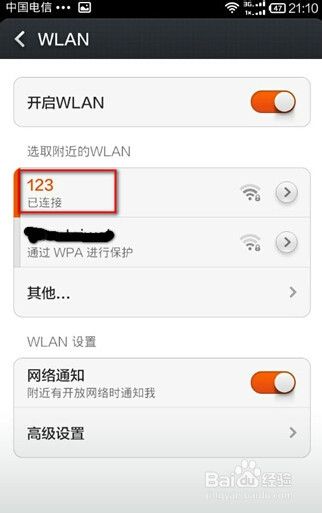 我们再次回到”WLAN“看到我们刚才添加的无线网是不是显示在里面了,显示成功连接了。有的手机需要之后输入密码!
