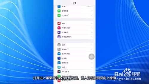 打开进入苹果手机上的系统设置,进入将设置页面向上滑动。