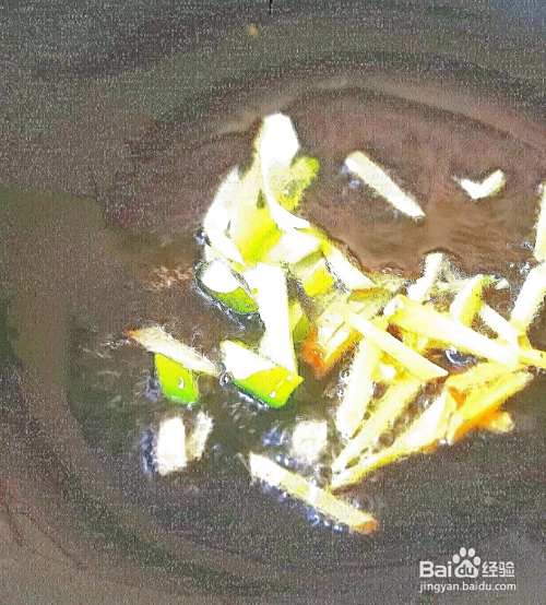 大葱切成丝,卤豆腐切成条备用