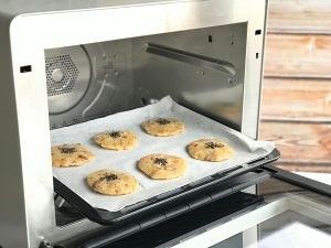 撒上黑芝麻装饰,提前预热烤箱上下火150度,烤制18分钟