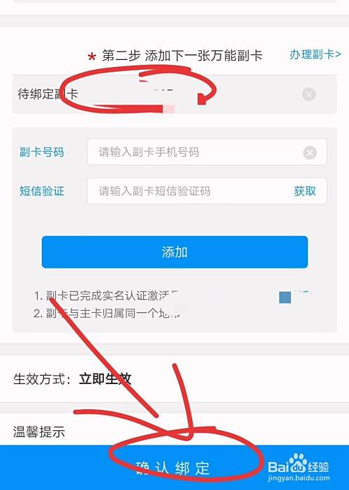 如何绑定副卡,手机端主卡绑定副卡的方法图解