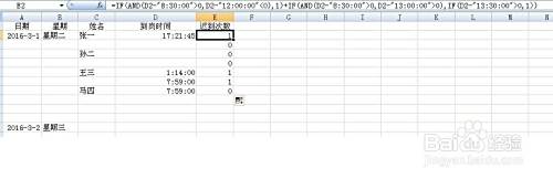 =IF(AND(D2-"8:30:00">0,D2-"12:00:00"<0),1)+IF(AND(D2-"8:30:00">0,D2-"13:00:00">0),IF(D2-"13:30:00">0,1))