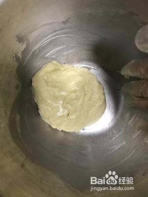 油酥部分:盆内放入55克玉米油和150克低筋面粉、用手抓均、没有干面即可、盖上保鲜膜备用