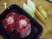 牛尾和葱姜放砂锅里,水开撇去沫。炖到肉酥烂调盐味胡椒粉备用。