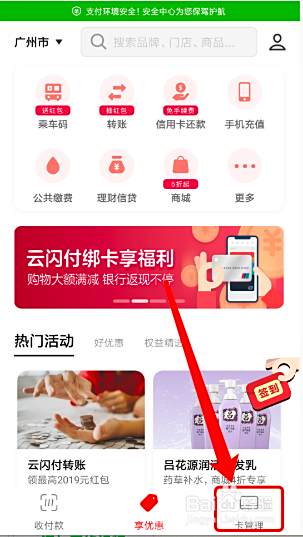 登录云闪付APP,点击右下角的“卡管理”,进入卡管理页面。