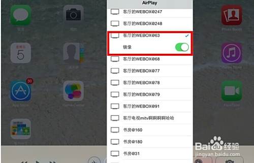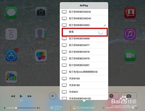 选择AirPlay。现在应能看到可用的AirPlay终端设备了。选中设置后,记得要将镜像勾选好!