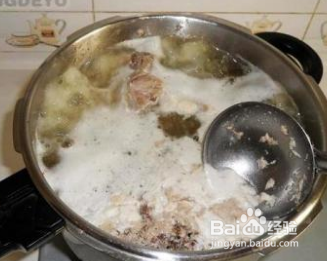 第三步大火烧开,捞去浮沫,小火慢炖1.5小时,完美鸡汤出锅