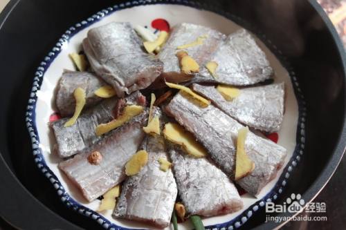 葱白铺在盘子底部,摆上带鱼,表面放姜片。水开后大火蒸10分钟。