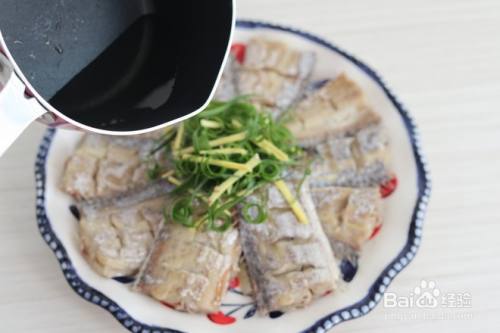 出锅后倒掉盘里的水,去掉葱段和姜片。重新撒上葱丝和姜丝,淋上热油。