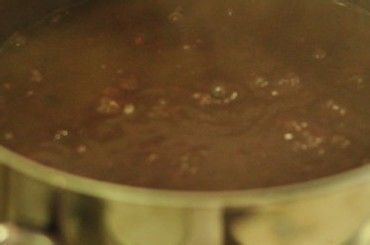 5、待小火熬上2小时以上(这期间要不停的搅拌,以免糊锅),如果水少了可以继续加凉水;
