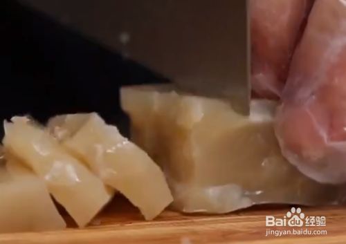 猪皮冻就成型了,拿出切块