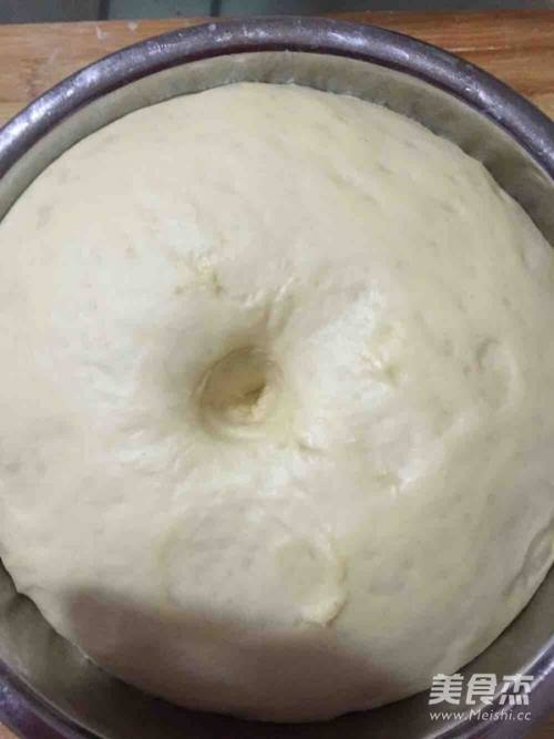 1面粉加水、酵母揉成面团,室温发酵至2倍大,现在的天气约1个半小时