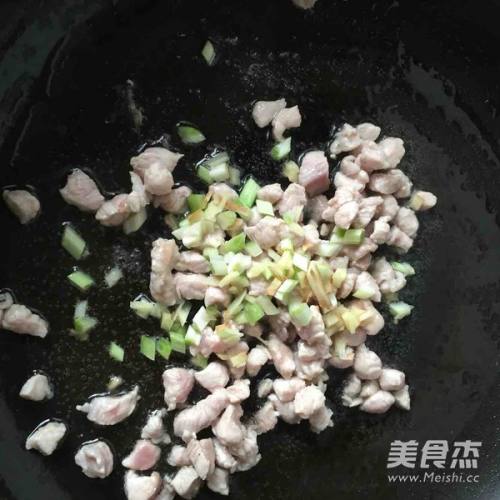 15炒至肉变色加入葱姜末