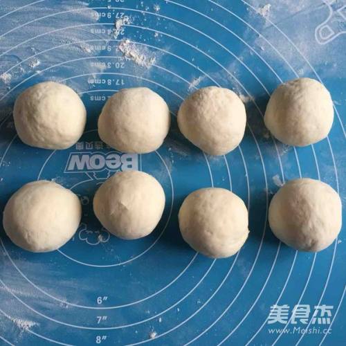 2发酵好后,揉面排气盖保鲜膜醒10分钟,分成8等份