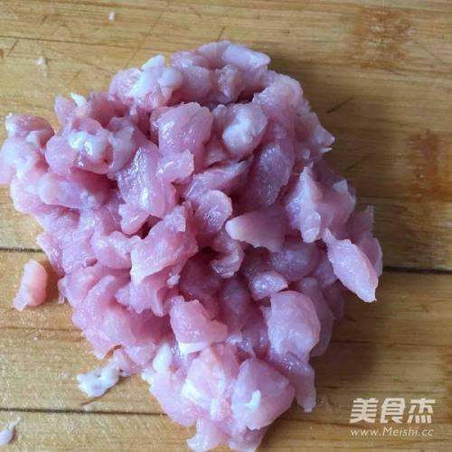 11趁蒸饼的时间制作夹馅,肉切小块肉切丁