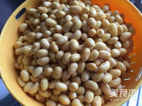 1黄豆提前浸泡过夜,这是泡发的黄豆