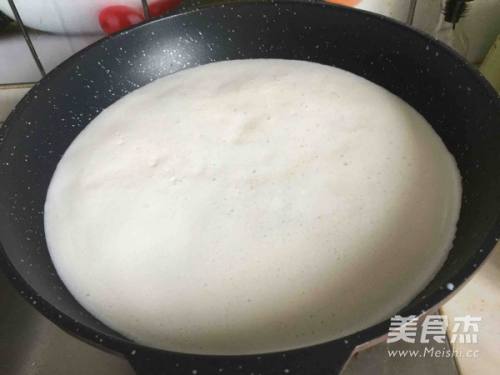 5我一共打了3分钟,再用纱布过滤了一下,豆渣量少很细腻,把过滤后的豆浆倒入锅里用中小火煮