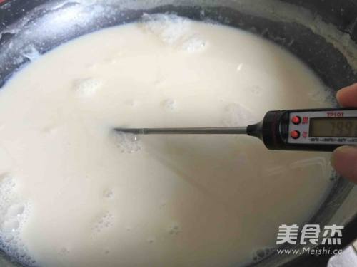 6期间要不断搅拌以防粘锅,煮豆浆需要煮开三次,关火降温到80度左右