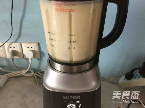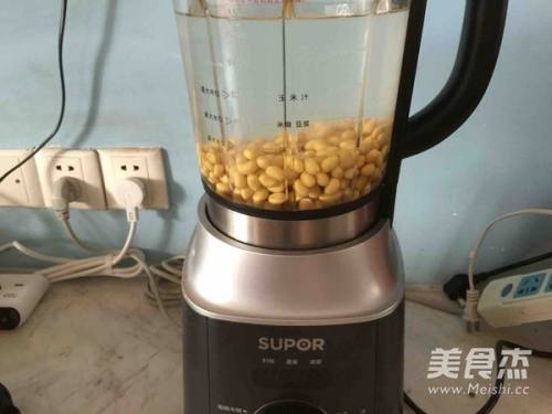 2取320克湿黄豆放入破壁机的搅拌杯里,按照黄豆与水1:5的比例,加入1600ML的清水,我是分2次搅打的